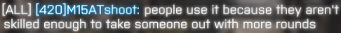 Kind of hard to have this talk with someone whose top kills with weapons and vehicles is the v40 mini, mortar and EOD bot....